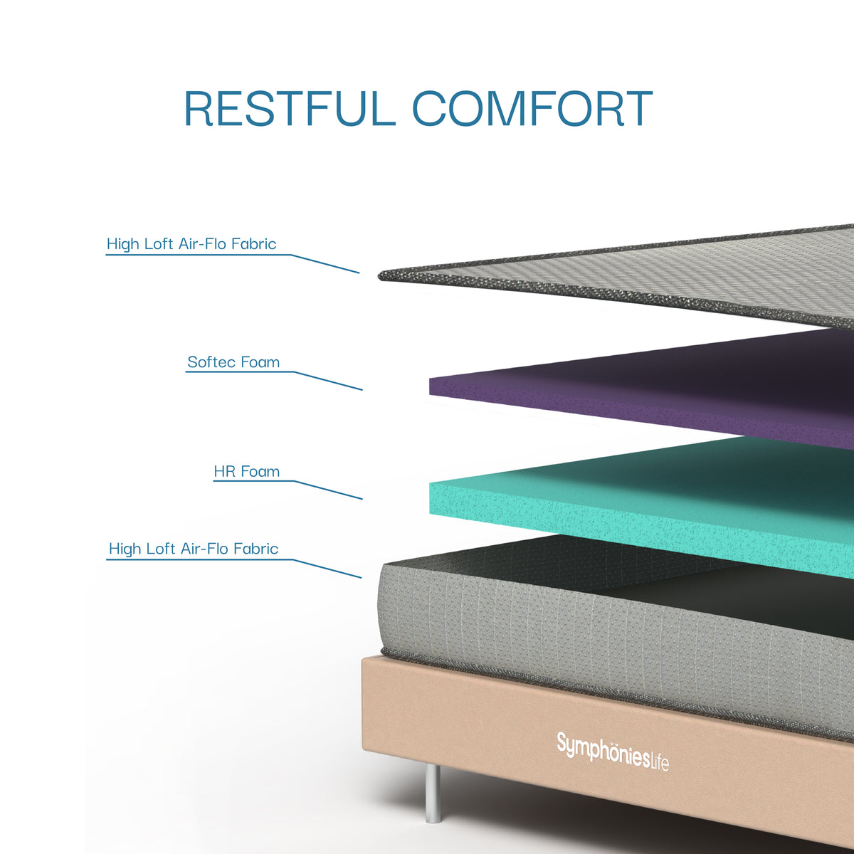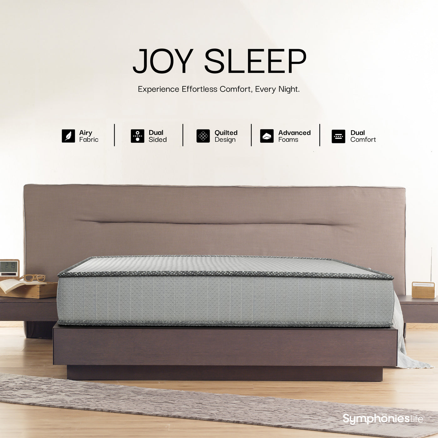 Tired of waking up hot and restless? The Joy Sleep Mattress by Symphonies Life® is built with breathable Air-Flo fabric and dual foam layers to keep you cool and supported through every season. Designed for everyday ease, it combines Softec Foam’s soft touch with HR Foam’s firm support—creating the perfect balance for deep, uninterrupted sleep. Whether it's summer heat or daily fatigue, this mattress helps you sleep lighter, and wake brighter.